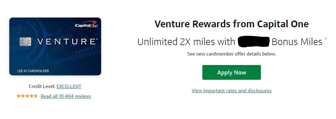 Visit the Capital One Venture Rewards Credit Card home page, and click on “Apply now”.